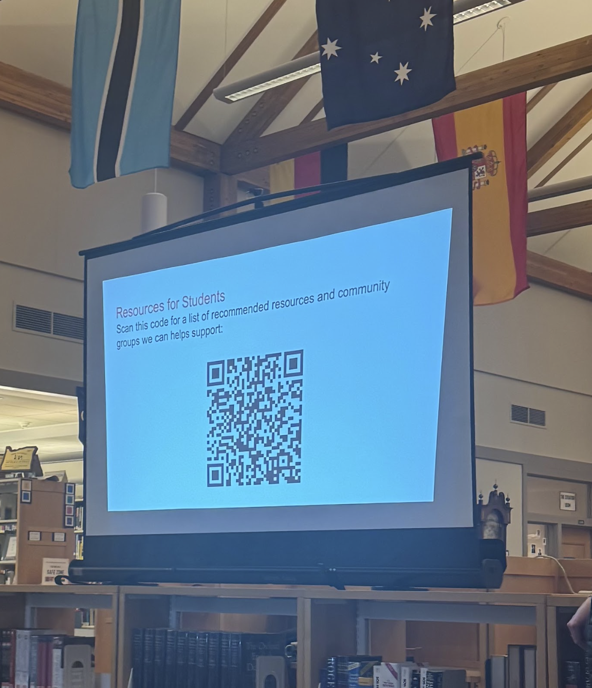 A QR code provided at the end of the teach-in linked to further resources. Courtesy of Gracyn Gardner ‘26.
