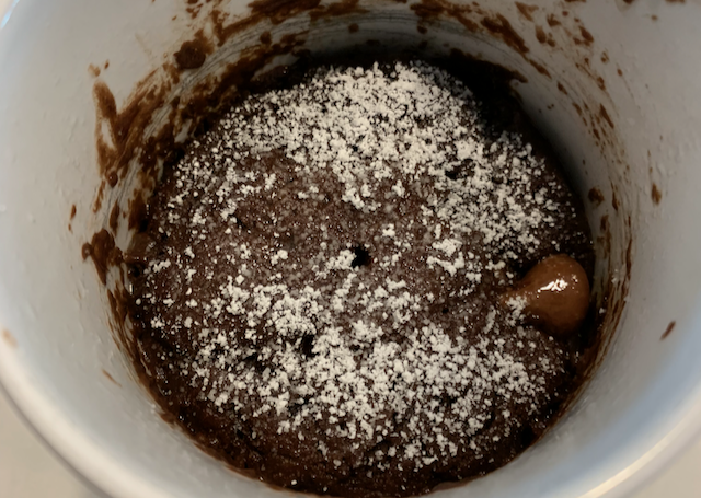 The panel appreciated that this mug cake was the only gluten-free option tested, and the recipe provided accurate cooking instructions, leaving the mug cake fully cooked. Unfortunately, upon being pulled out of the microwave, the cake was disappointingly small. This recipe may very well not produce a sufficient quantity of mug cake to satisfy a craving. One could try doubling the recipe, but that would impact cooking times and require additional adjustments.