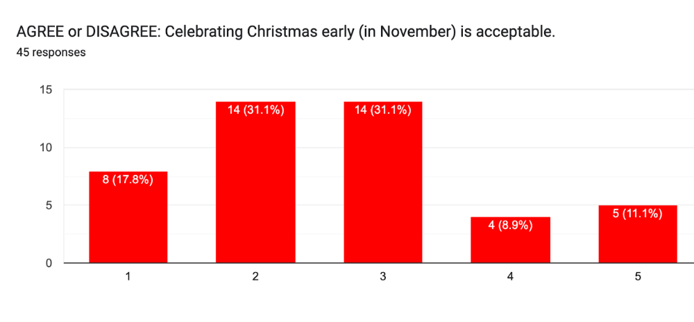 Furthermore, some took the stance that celebrating before December did not impact others, and was not anyone else’s business. “Let people do what they want if it isn’t affecting others or themselves in a negative way,” said an anonymous freshman. “I think if it makes people happy, I don’t care,” added a junior.