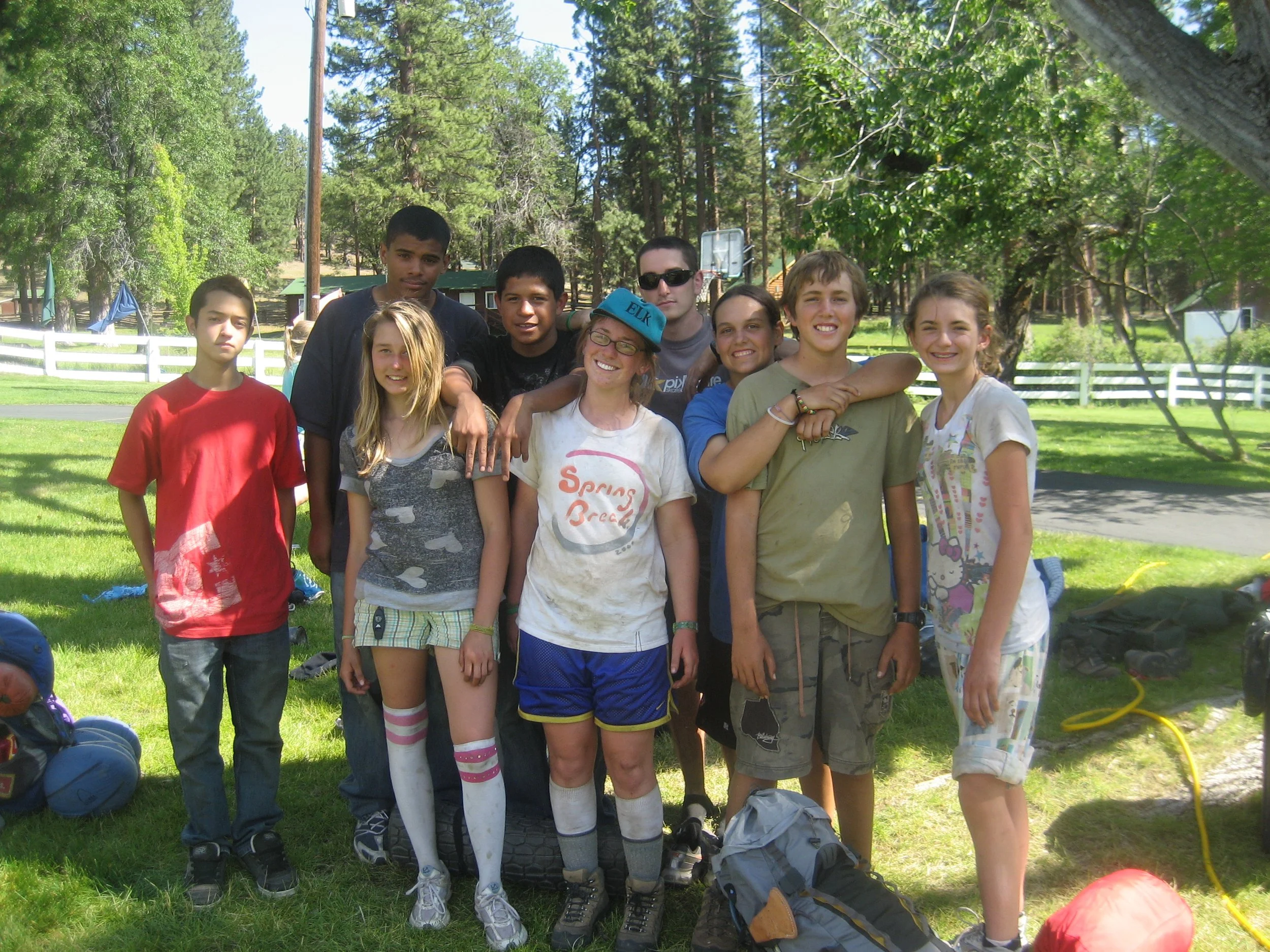 Lindsay Babbitt (middle), surrounded by her students, on the first Outdoor Education trip she led in 2009. Courtesy of Lindsay Babbitt.