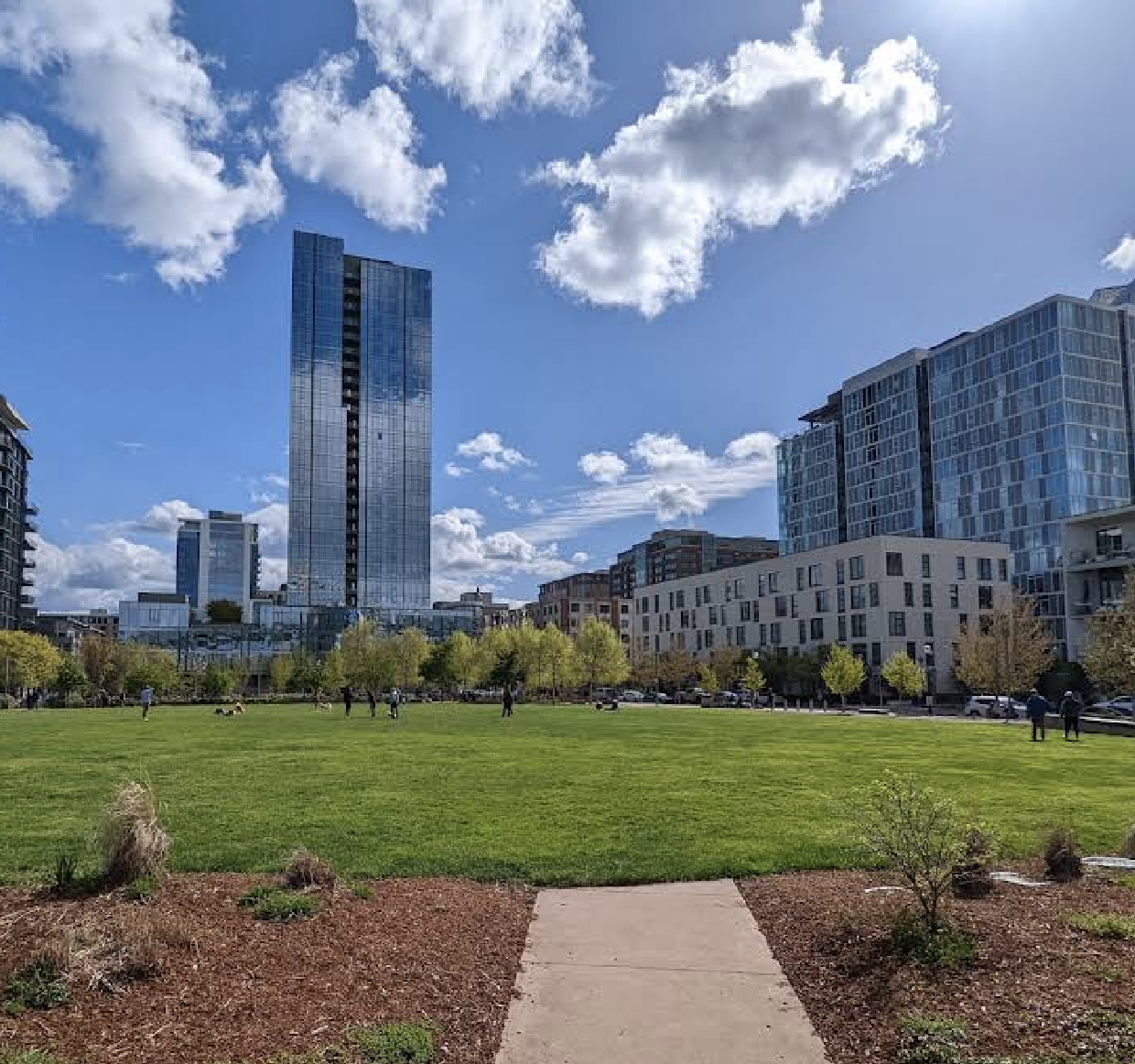 A photo capturing The Fields Park and the surrounding buildings. Courtesy of Kyle Eldridge.