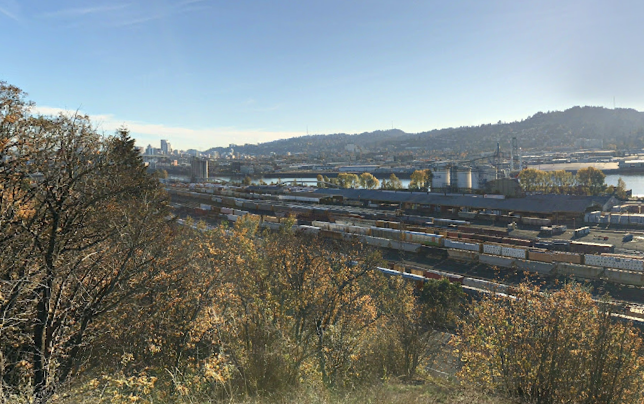 Located in North Portland on a ridge overlooking the Willamette River, this narrow park provides a great view of the train tracks bounding the river, Northwest Portland, and a glimpse of downtown. A main dirt path meanders from the south end to the north end, stretching a few blocks. Along the path lay a couple of benches, some surrounded with romantic circles of little rocks.