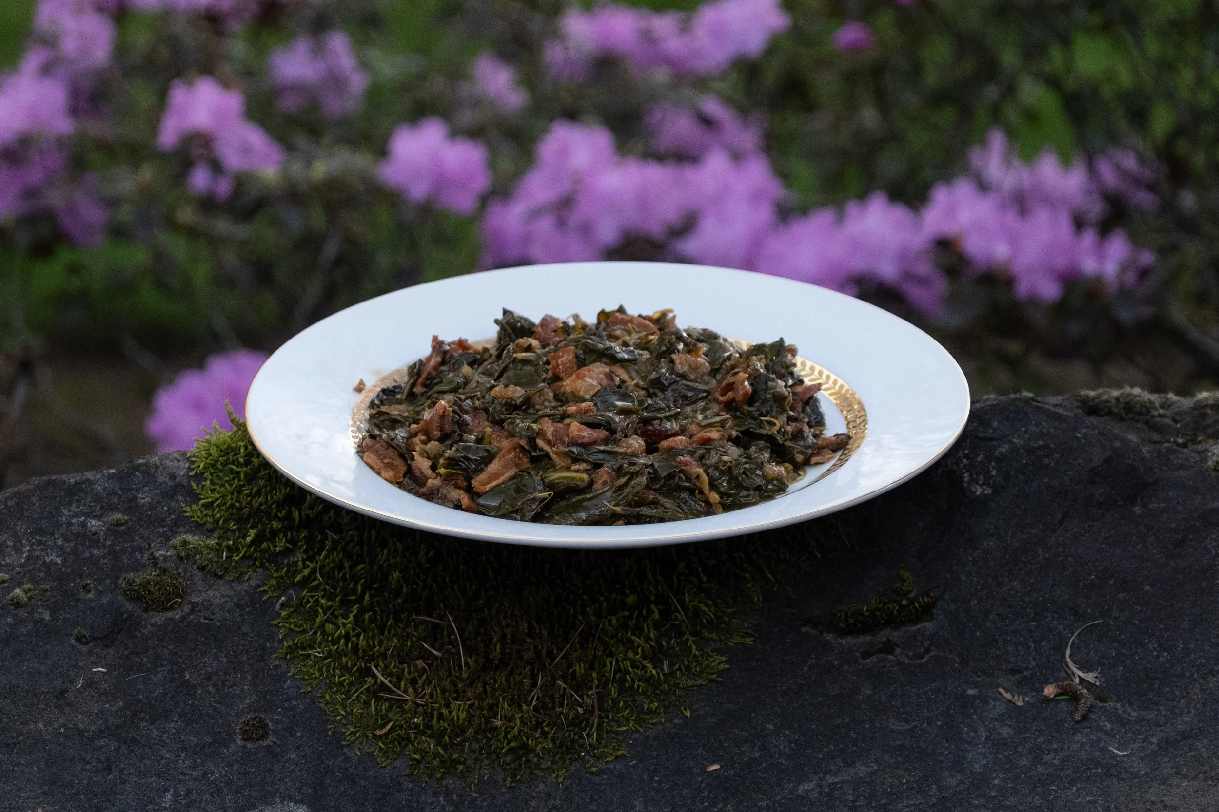 Bringing the dish to life is a long, love-filled process, entailing cleaning and tearing the greens, preparing the protein, and reducing and simmering the greens in the pot liquor.