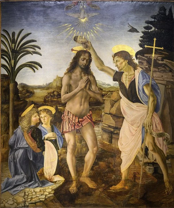 The Baptism of Christ (Verrocchio and Leonardo). Courtesy of Wikipedia.