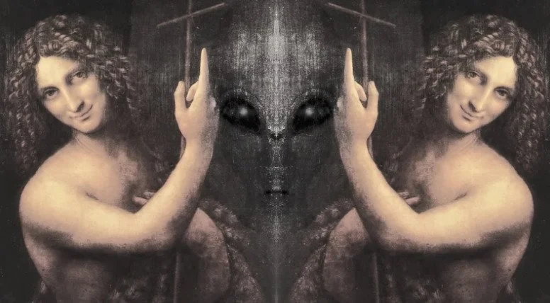 Saint John the Baptist next to the original, a humanoid alien face seemed to appear in the middle. Other examples of these disguised alien figures include the Mona Lisa, The Virgin and Child, and The Virgin of the Rocks.